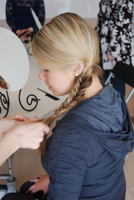 | Kacy demonstrates the beginnings of a 'FishTail Braid' |